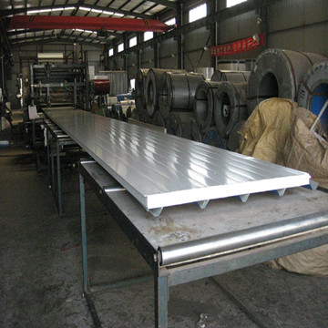 980型瓦愣夾芯板:用于建筑性屋面、屋頂?shù)母魺嵬,?guī)格有5公分、7.5公分、10分分、彩鋼板厚度0.326-0.5mm。長度定尺生產(chǎn)。